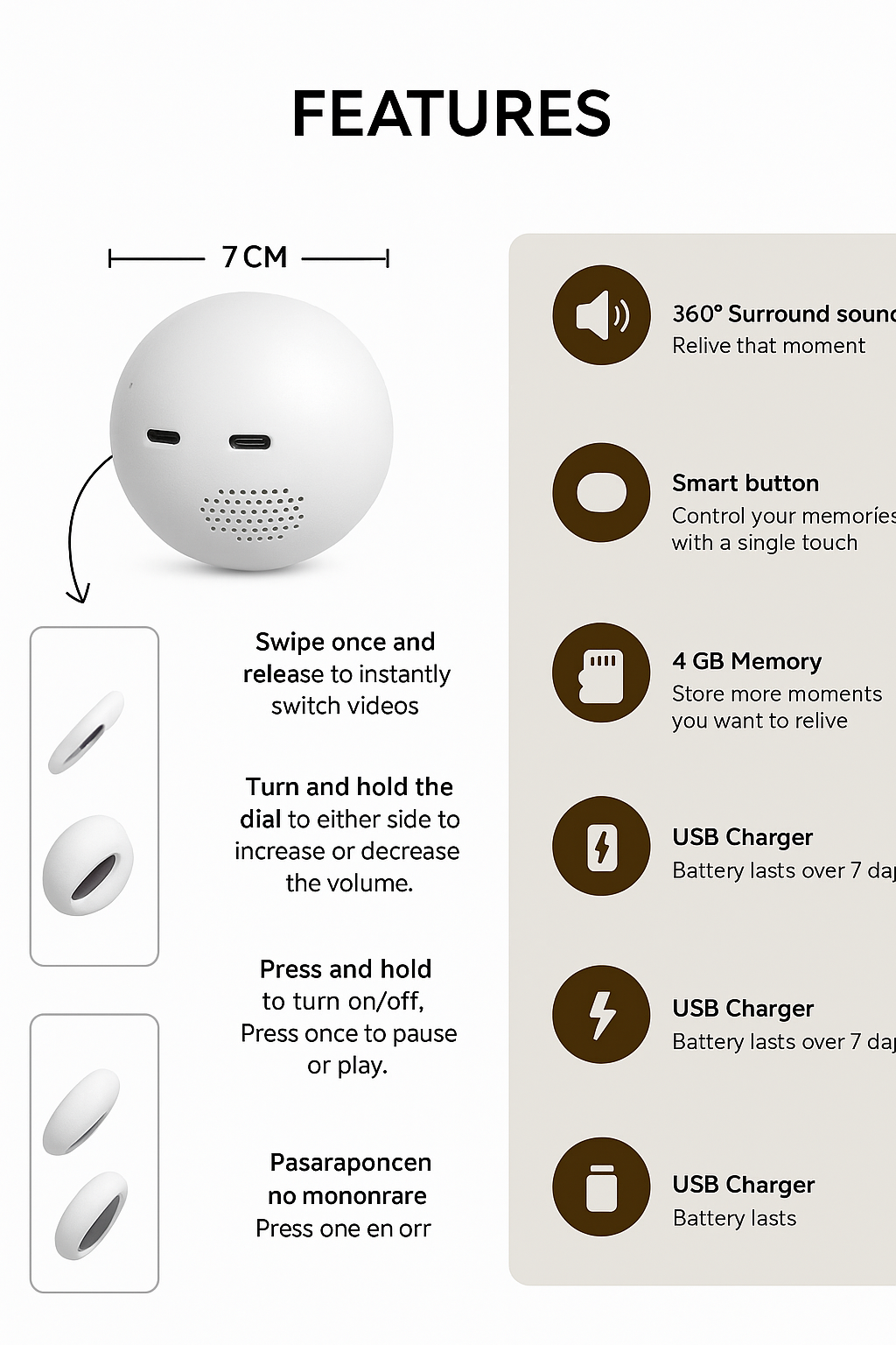 HappyView is a personalised sphere that plays your videos with sound. Save your most special memories and relive them whenever you want.